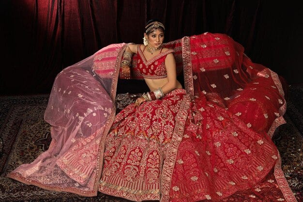 Red remains the quintessential color for Indian wedding lehengas, but in 2025, designers are giving it a fresh spin. Look for red lehngas with unique detailing like scalloped hemlines, ruffled dupattas, or fusion blouses. Combining classic red with modern design elements ensures you’ll look both timeless and trendy.